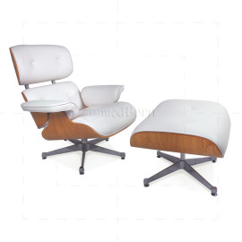Lounge Chair and Ottoman WHITE Leather Walnut Wood specifics